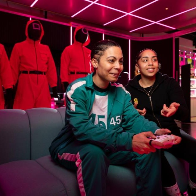 EE has partnered with major brands including Apple TV and Netflix to deliver immersive launches at the EE Studio store. The Squid Game 2 launch featured the iconic piggy bank as its centrepiece, with grabber games and an opportunity to try the new Squid Game modes on Call of Duty: Black Ops 6 within the gaming zone. For the F1 Movie collaboration with Apple TV, customers could win exclusive prizes and experience authentic props from the Brad Pitt Blockbuster with the main focus being on the iconic APXGP car, offering visitors a ataste into the high-octane world of Formula 1 directly to the store.